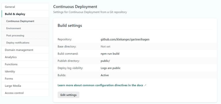 - Gå til Site settings i Netlify og velg Build & deploy